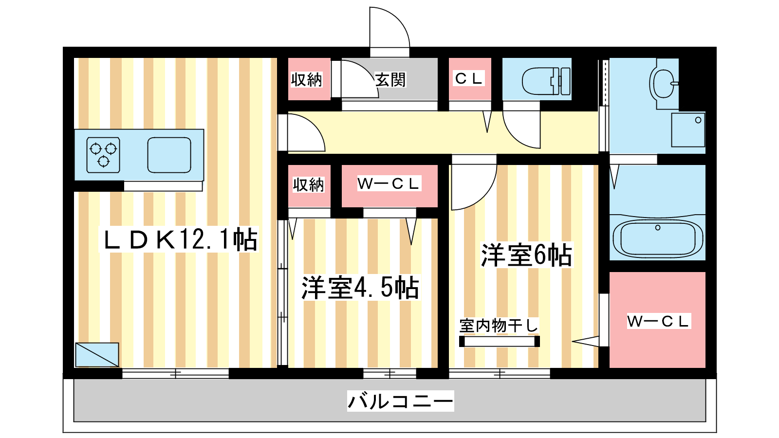 - LDK12.1帖、洋室6帖、洋室4.5帖