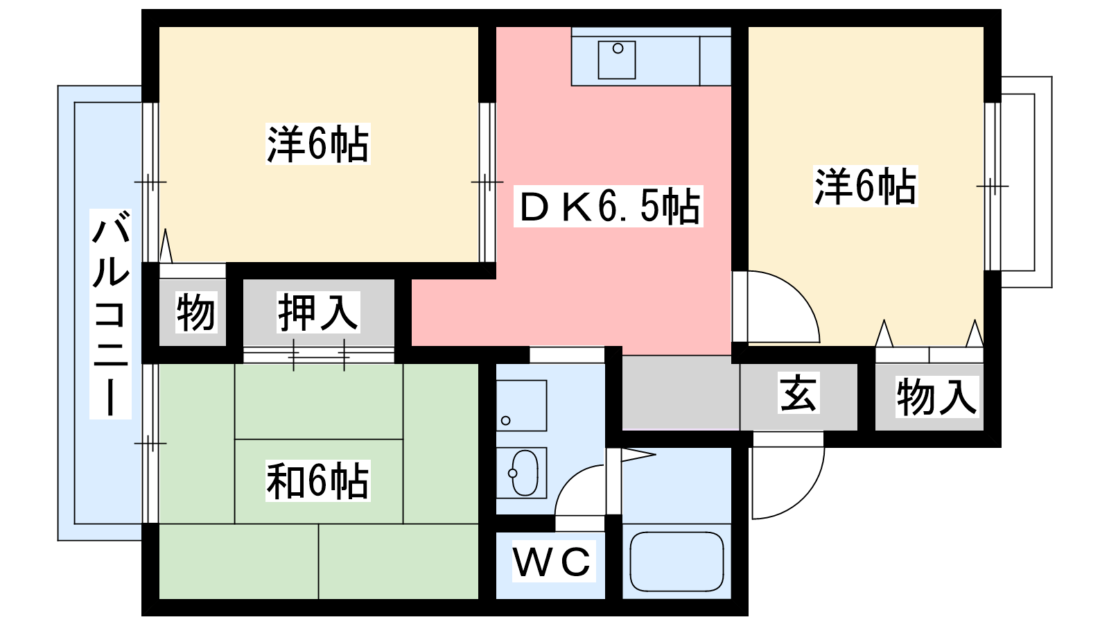- 洋室6帖、洋室6帖、和室6帖、DK6.5帖