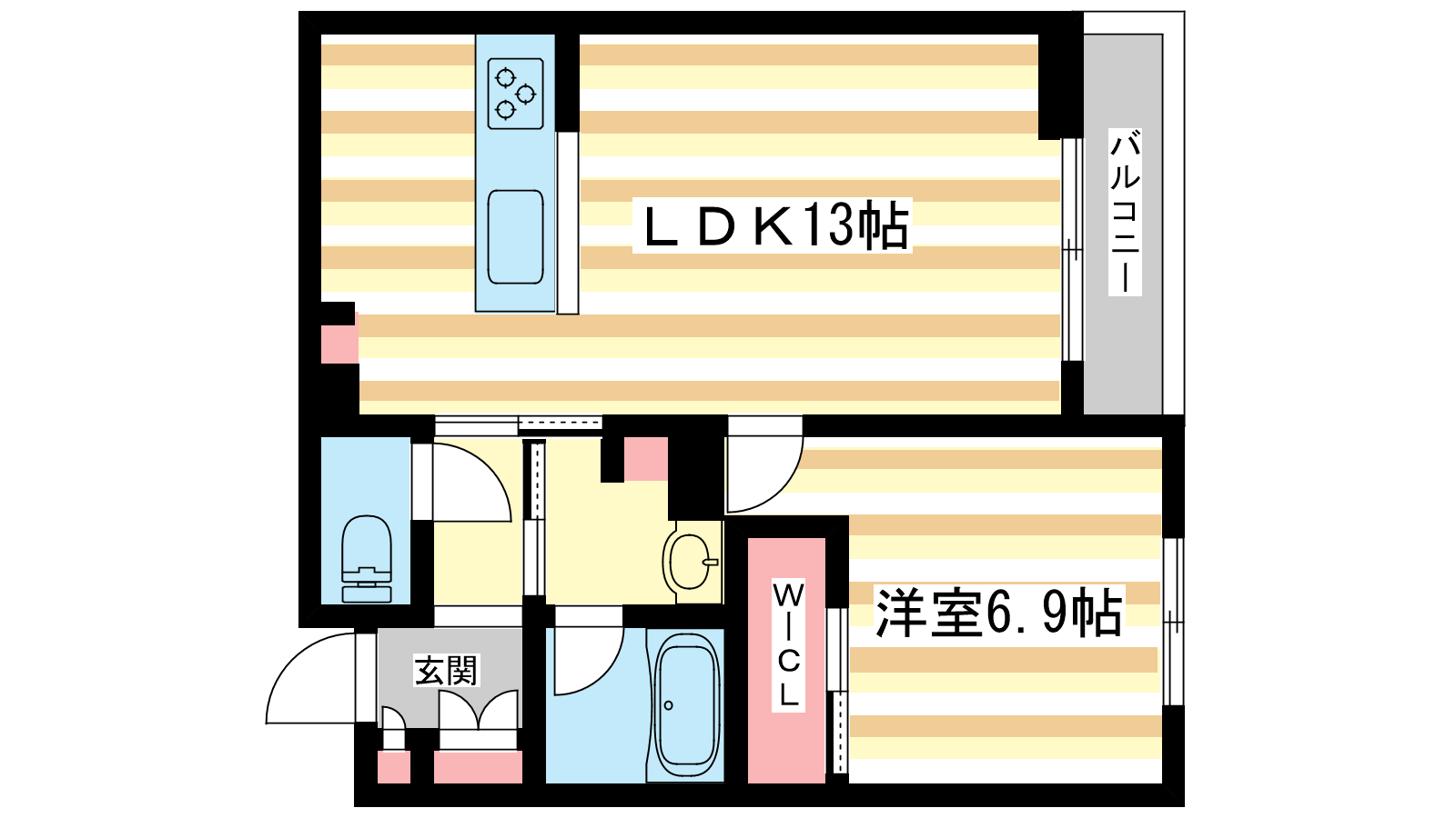 - LDK13帖、洋室6.9帖