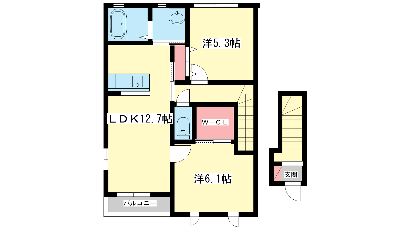 - LDK12.7帖、洋室6.1帖、洋室5.3帖