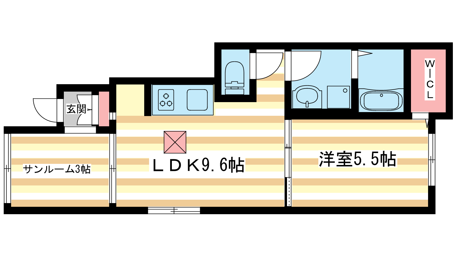 - LDK9.6帖、洋室5.5帖
