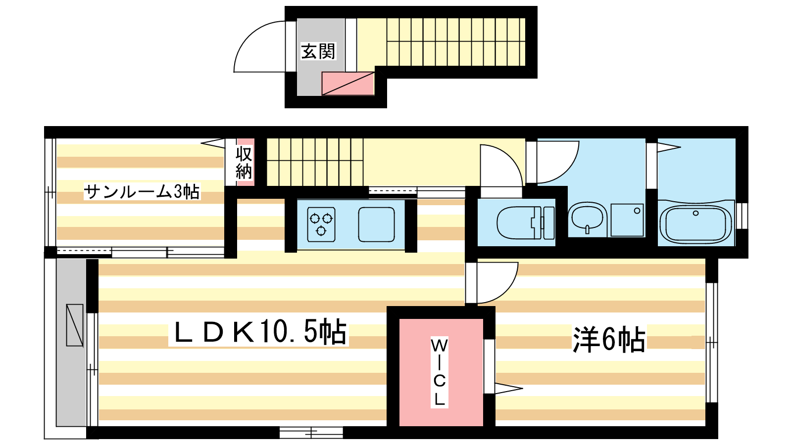 - LDK10.5帖、洋室6帖、S3帖