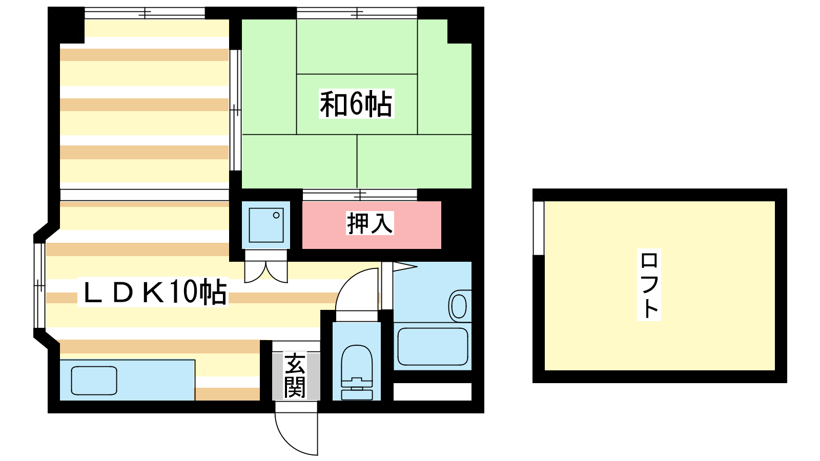 - 和室6帖、LDK10帖