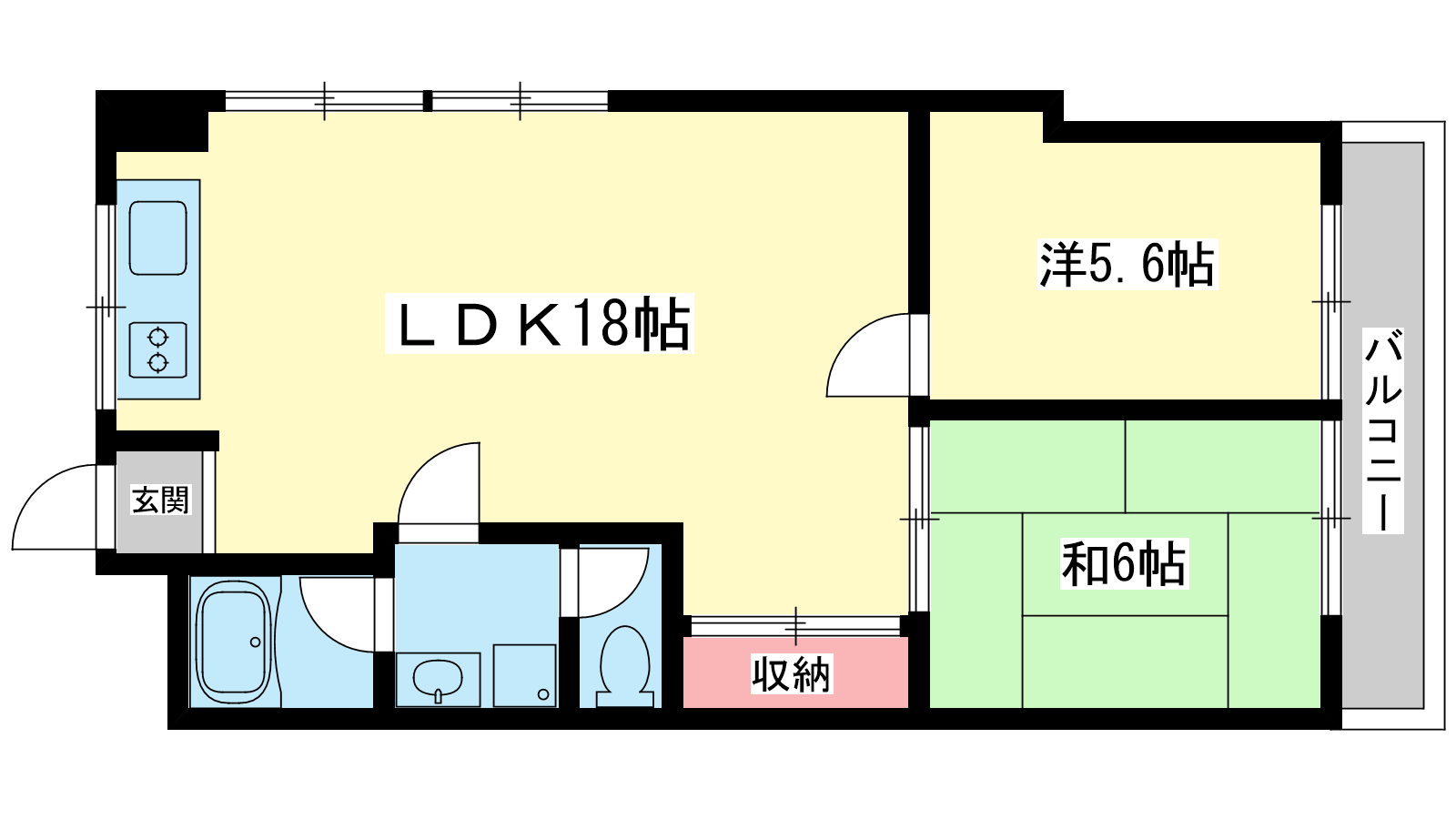 - LDK18帖、和室6帖、洋室5.6帖