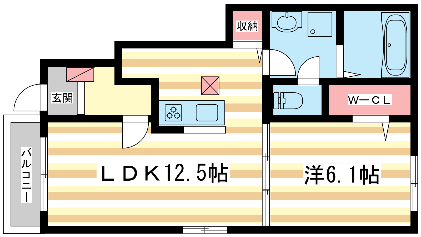 - LDK12.5帖、洋室6.1帖