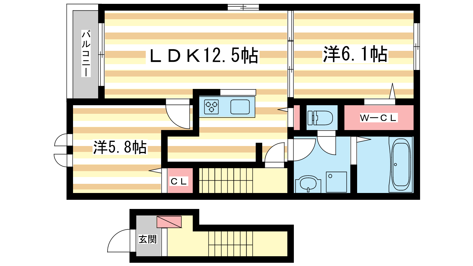 - LDK12.5帖、洋室6.1帖、洋室5.8帖