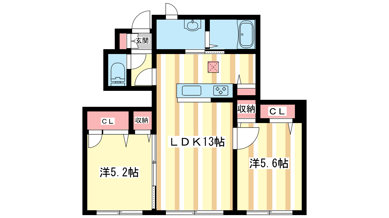 - LDK12.9帖、洋室5.6帖、洋室5.2帖