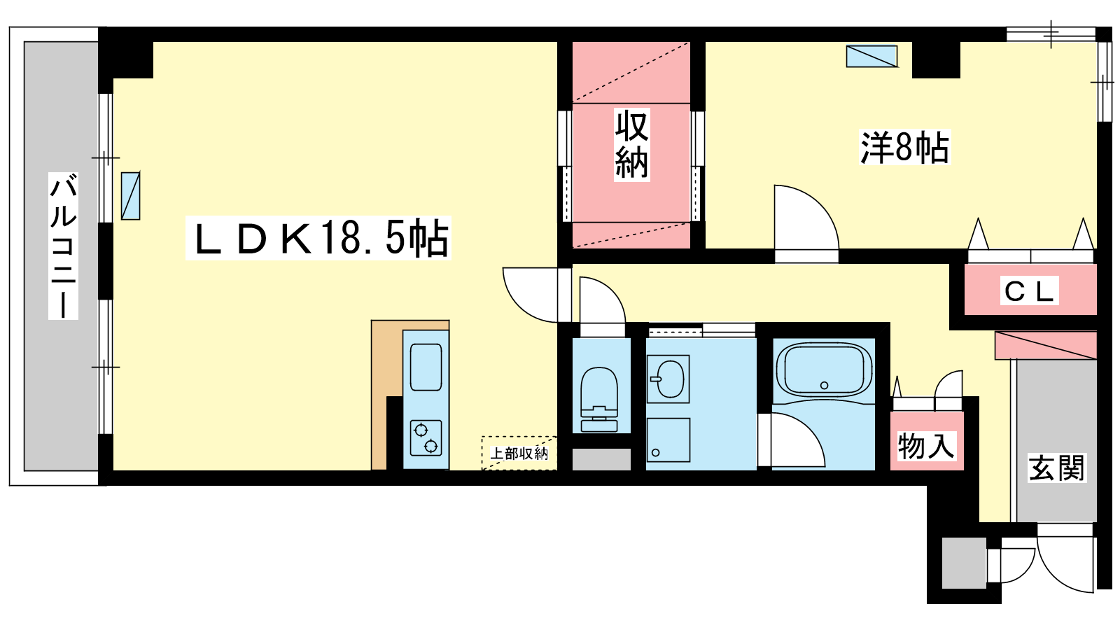 - LDK18.5帖、洋室8帖
