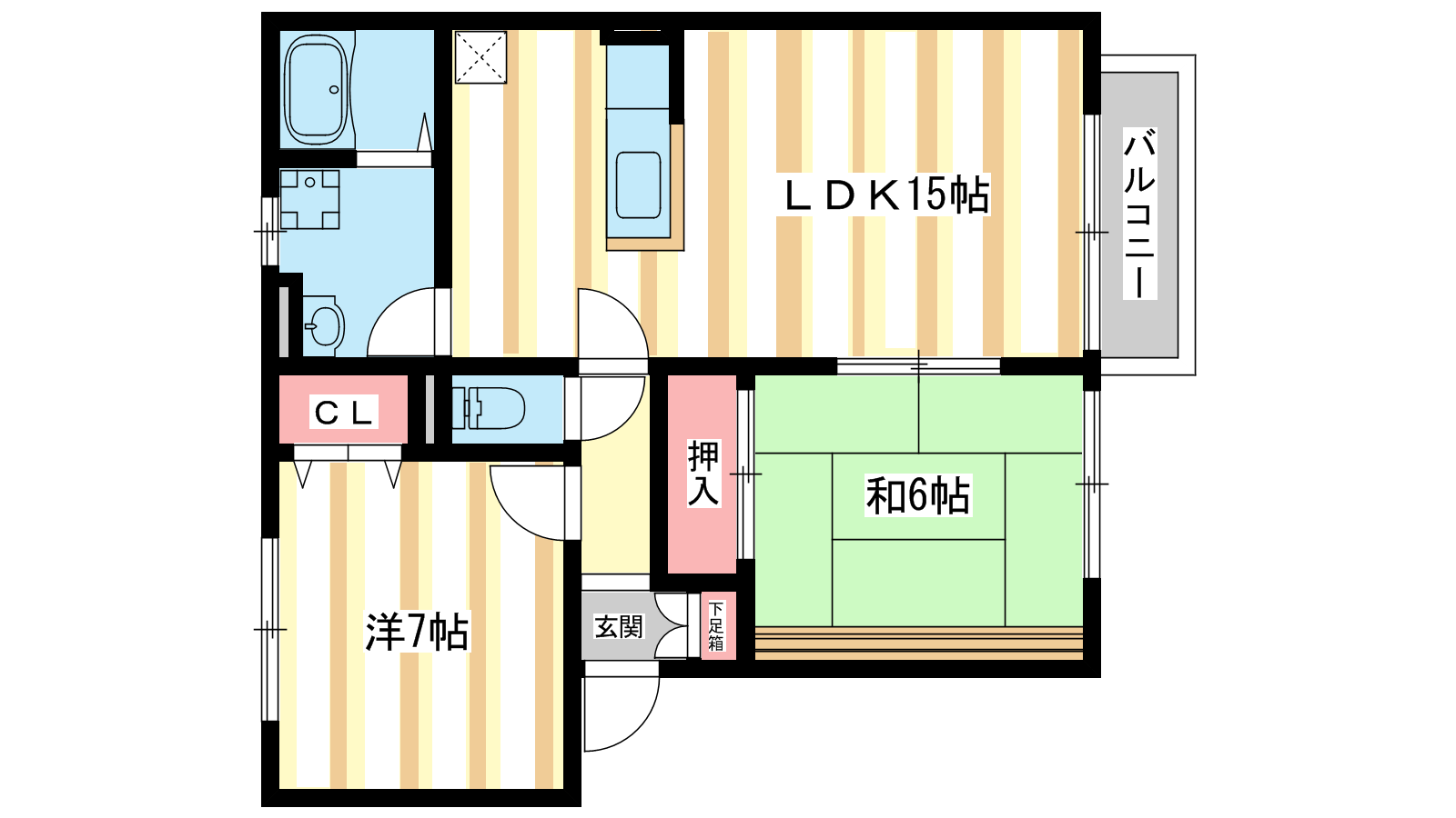- LDK15帖、洋室7帖、和室6帖