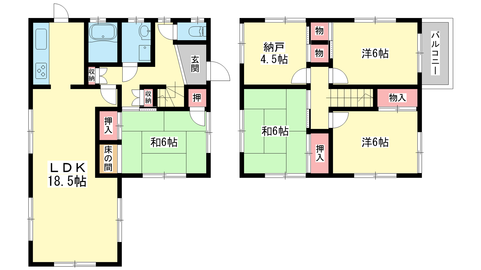 - LDK18.5帖、洋室6帖、洋室6帖、和室6帖、和室6帖、洋室4.5帖