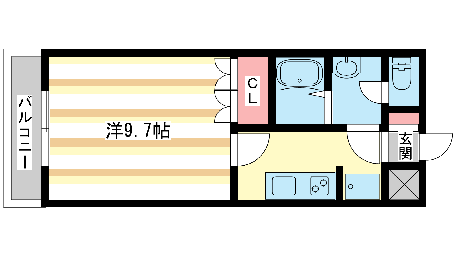 9.7帖と広めのワンルーム!2口ガスコンロシステムキッチン付き!