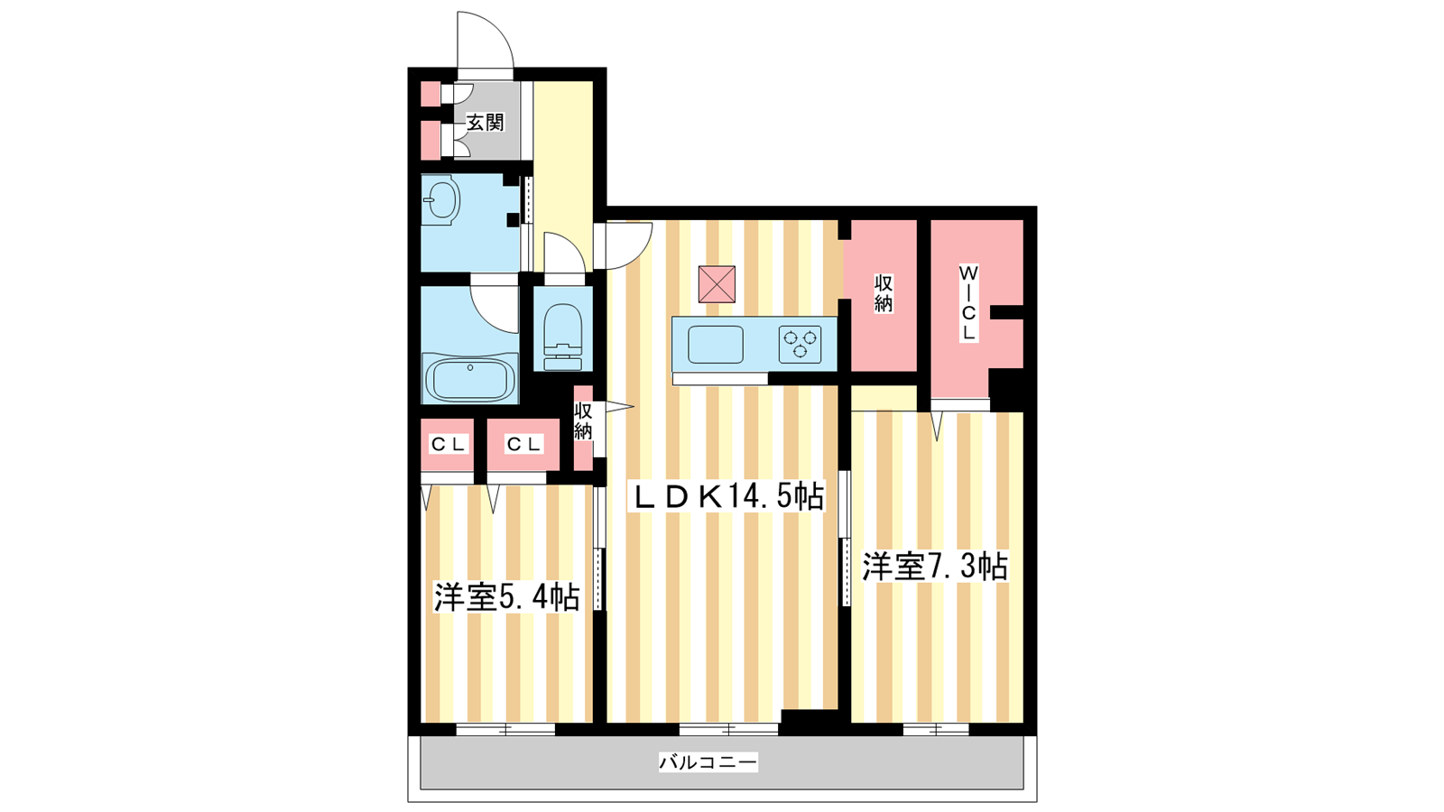 - LDK14.5帖、洋室7.3帖、洋室5.4帖