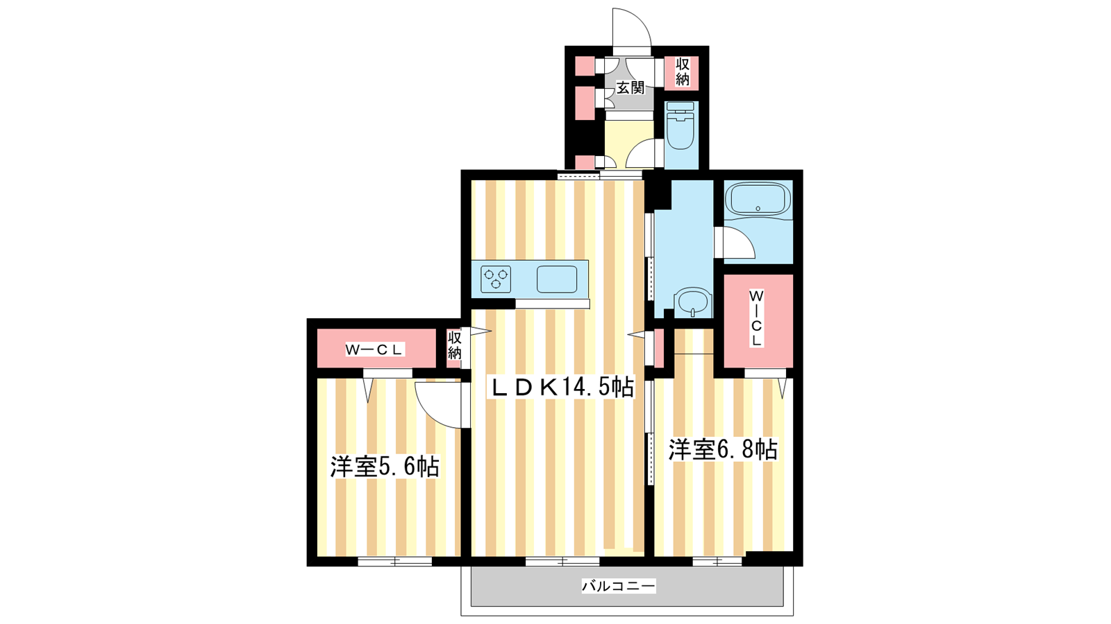 - LDK14.5帖、洋室6.8帖、洋室5.6帖