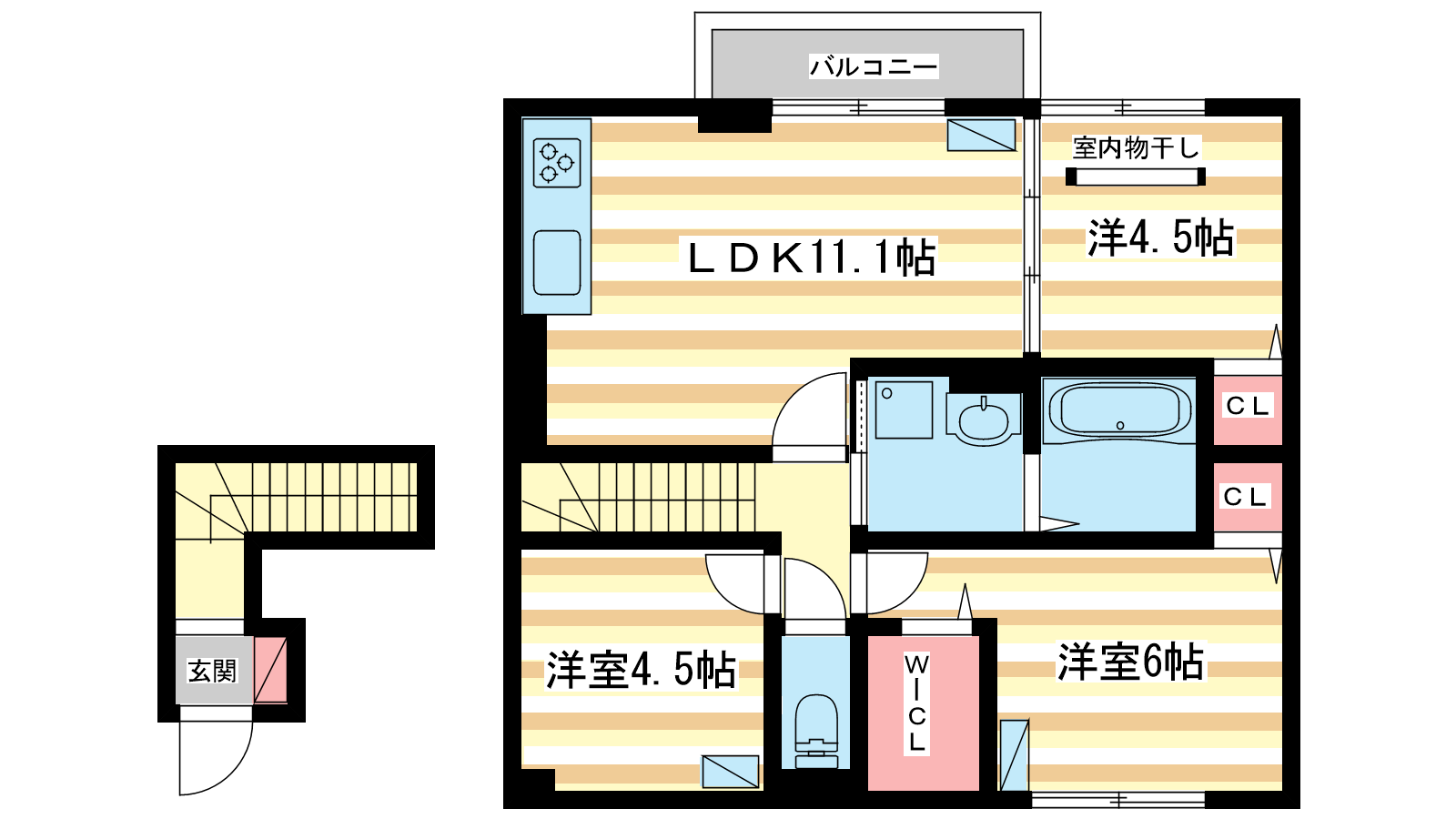 - LDK11.1帖、洋室6帖、洋室4.5帖、洋室4.5帖