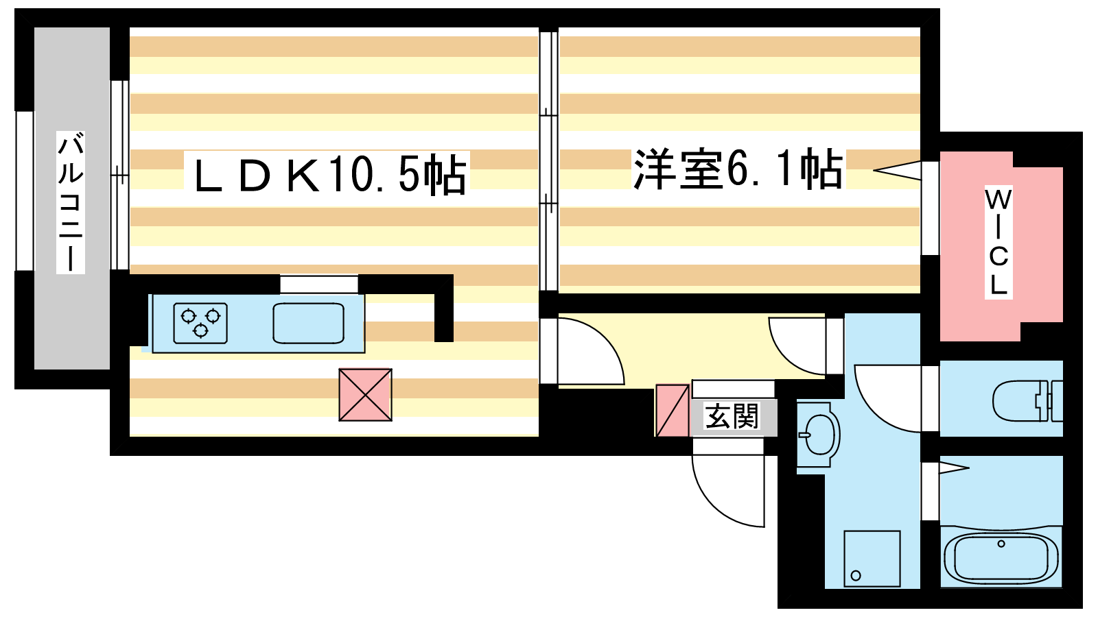 - LDK10.5帖、洋室6.1帖