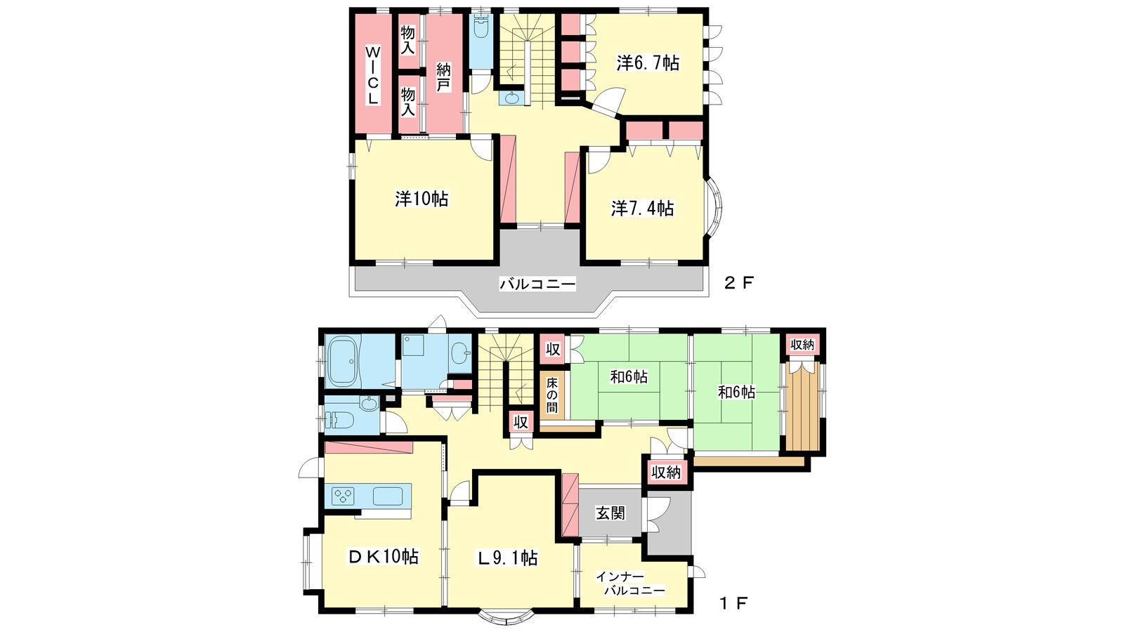 - LDK19.1帖、洋室10帖、洋室7.4帖、洋室6.7帖、和室6帖、和室6帖