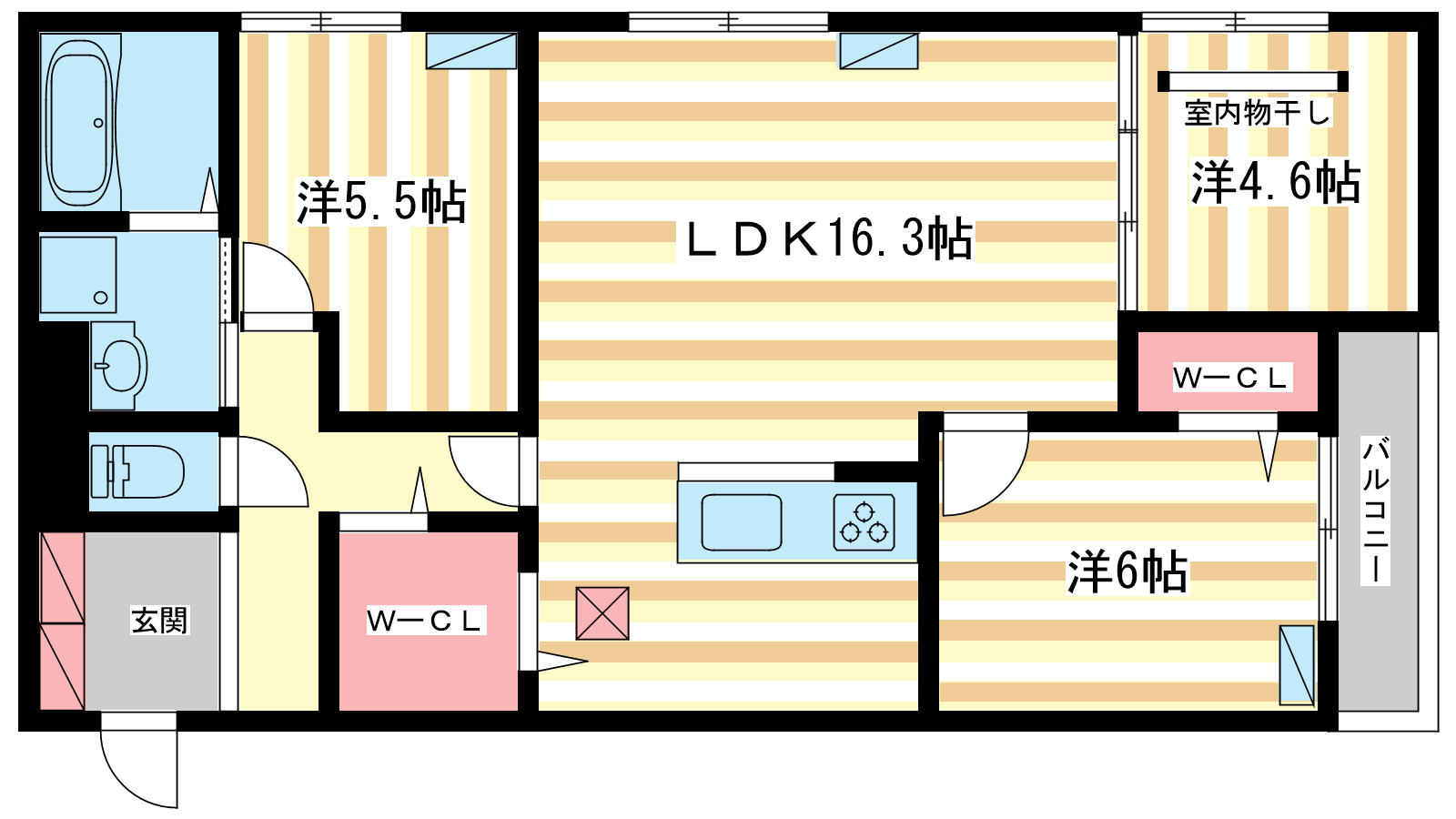 - LDK16.3帖、洋室6帖、洋室5.5帖、洋室4.6帖