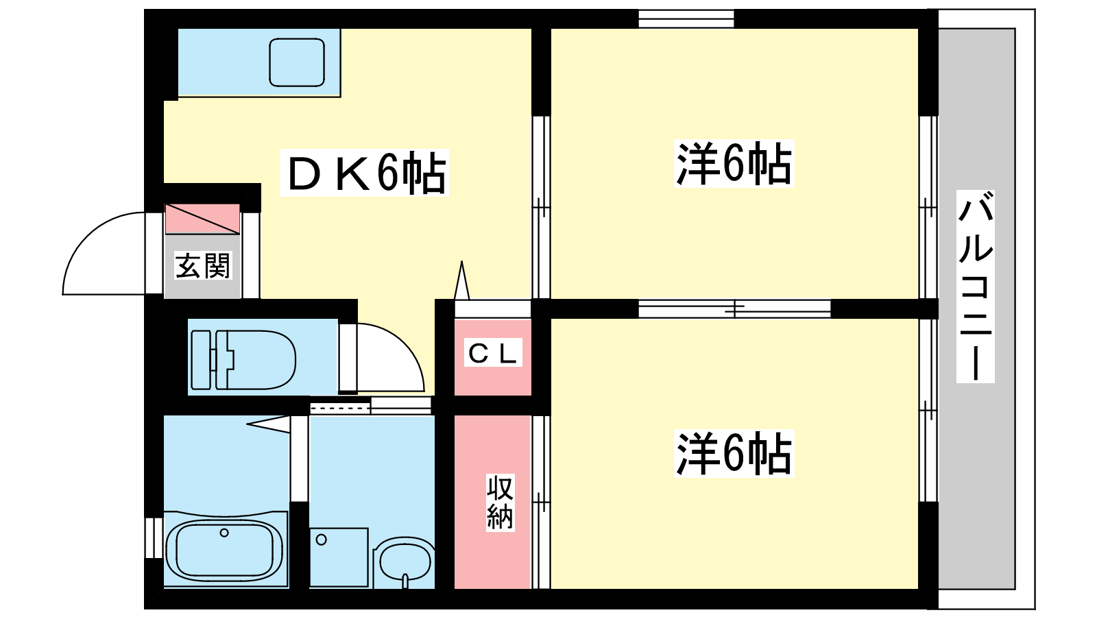 - DK6帖、洋室6帖、洋室6帖