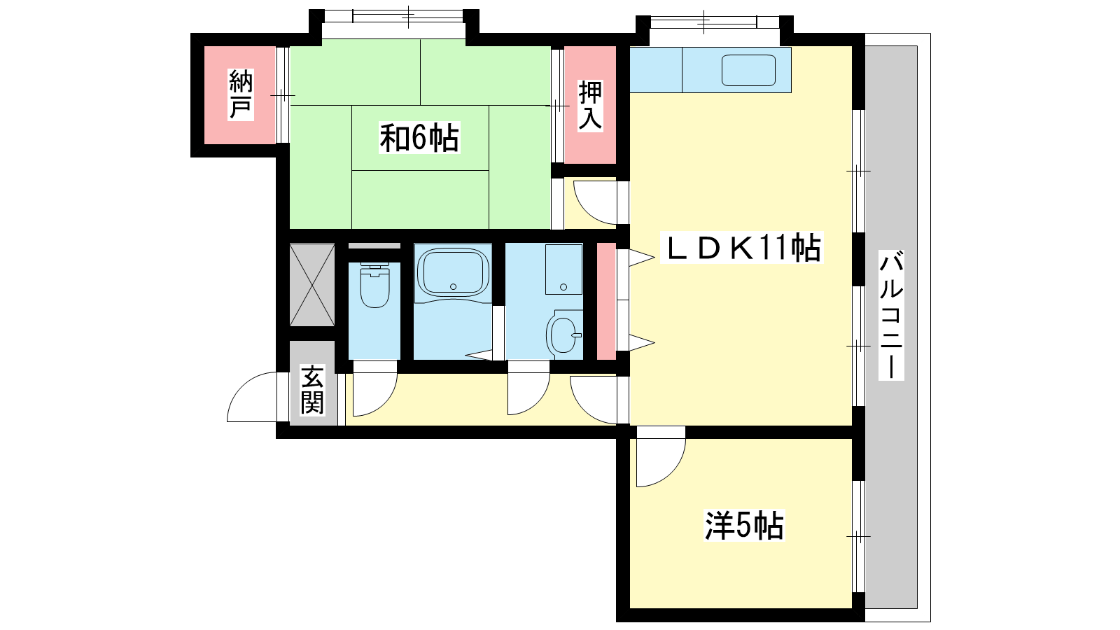 - LDK11帖、和室6帖、洋室5帖