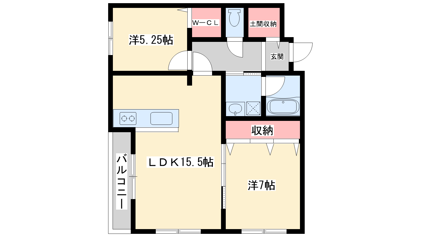 - LDK15.5帖、洋室5.25帖、洋室7帖