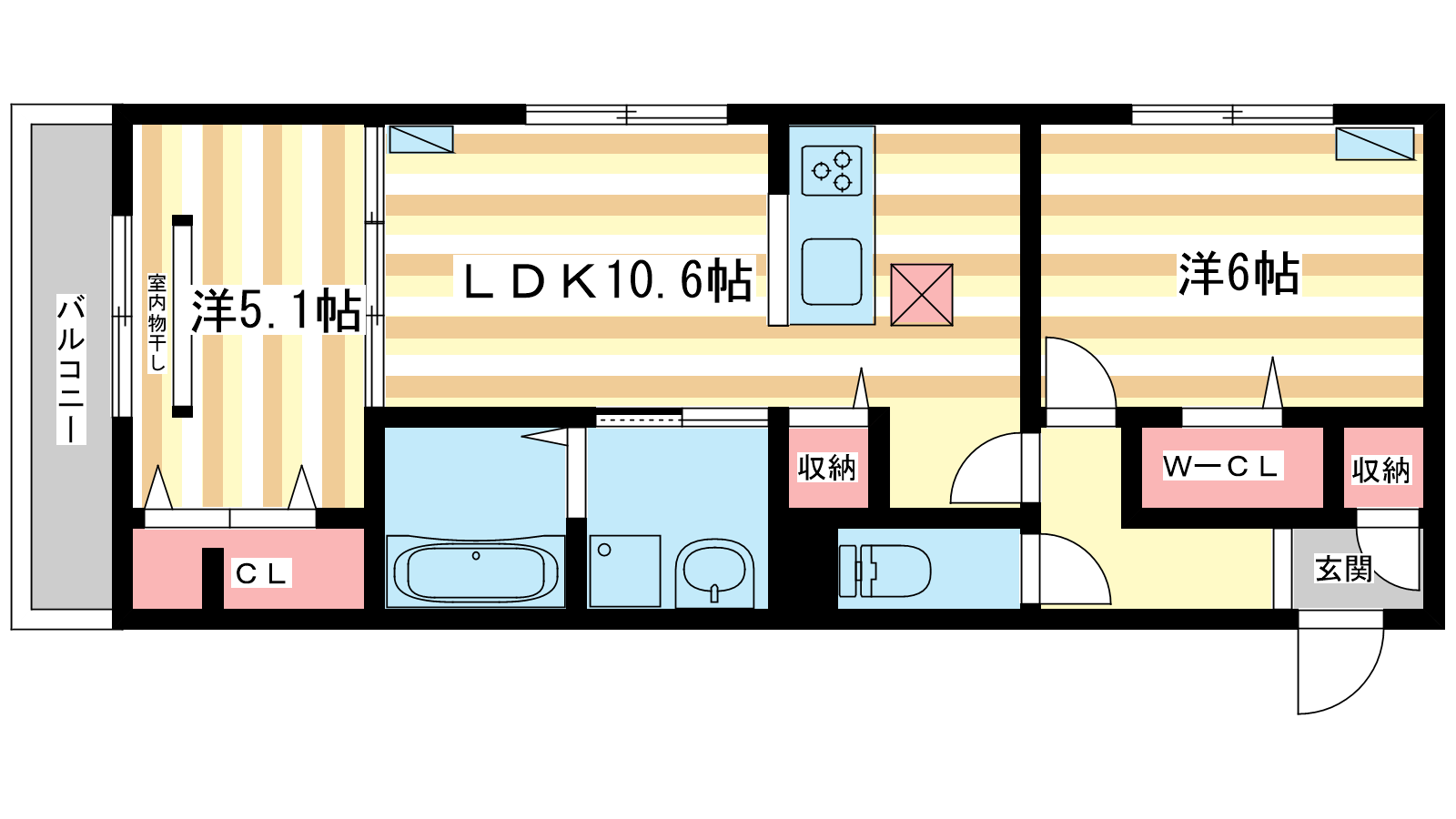 - LDK10.6帖、洋室6帖、洋室5.1帖