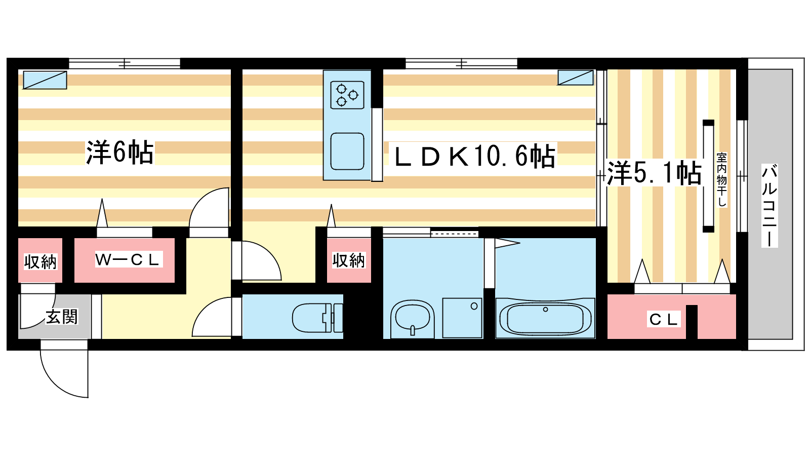 - LDK10.6帖、洋室6帖、洋室5.1帖