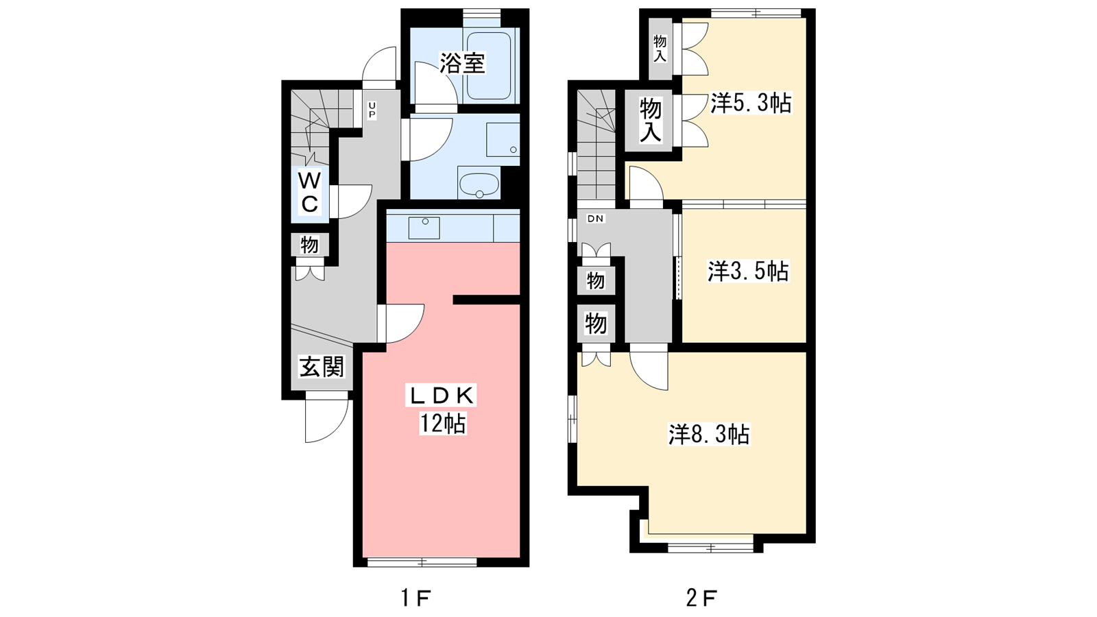 - LDK12帖、洋室8.3帖、洋室5.3帖、洋室3.5帖