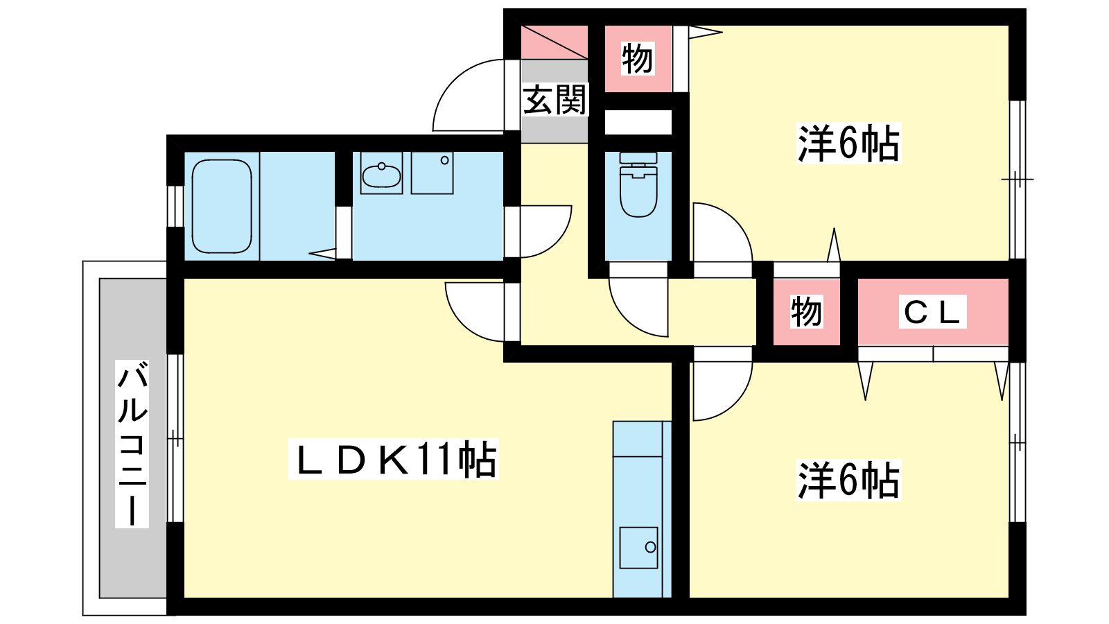 - 洋室6帖、洋室6帖、LDK11帖