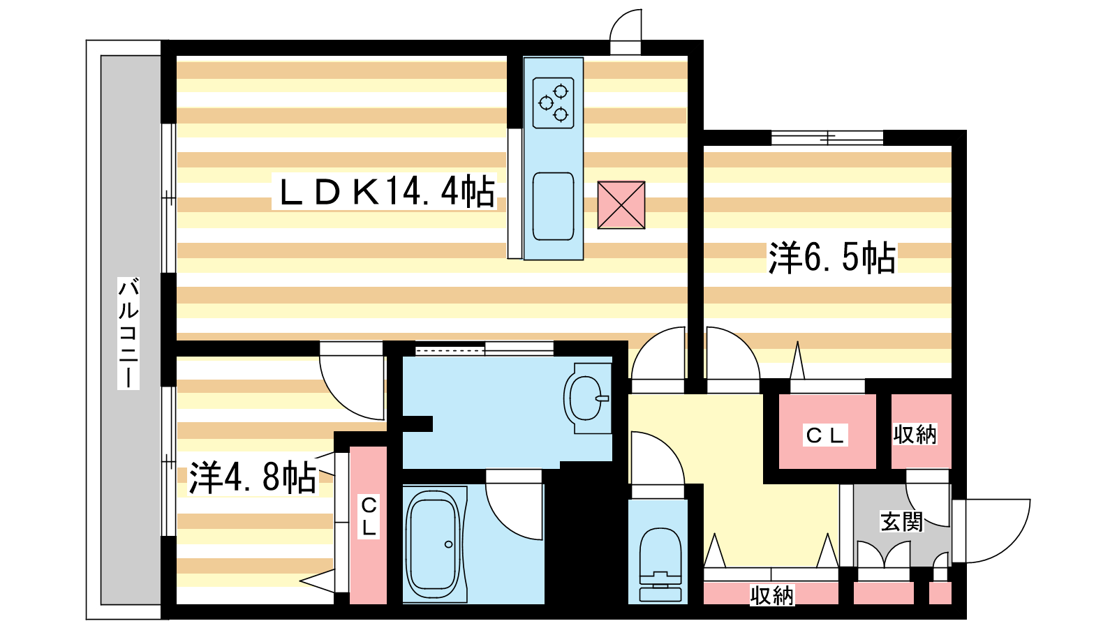 - LDK14.4帖、洋室6.5帖、洋室4.8帖