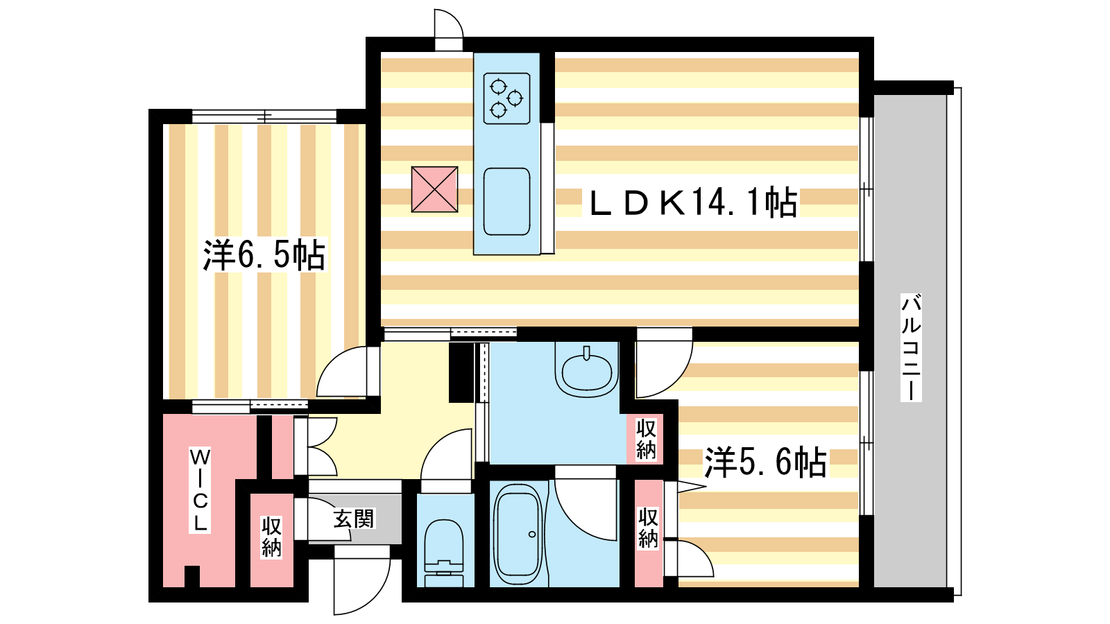 - LDK14.4帖、洋室6.5帖、洋室4.8帖