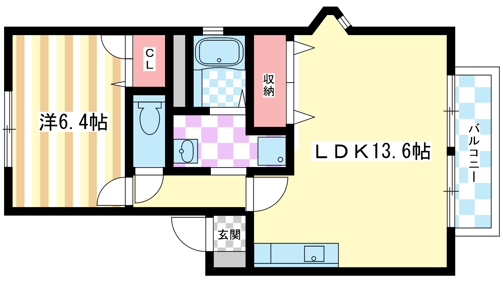 - LDK13.6帖、洋室6.4帖