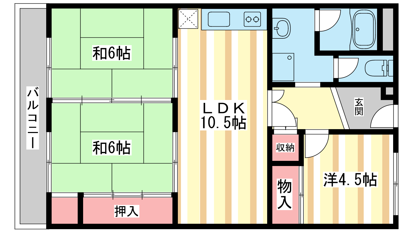- LDK10帖、和室6帖、和室6帖、洋室4.5帖