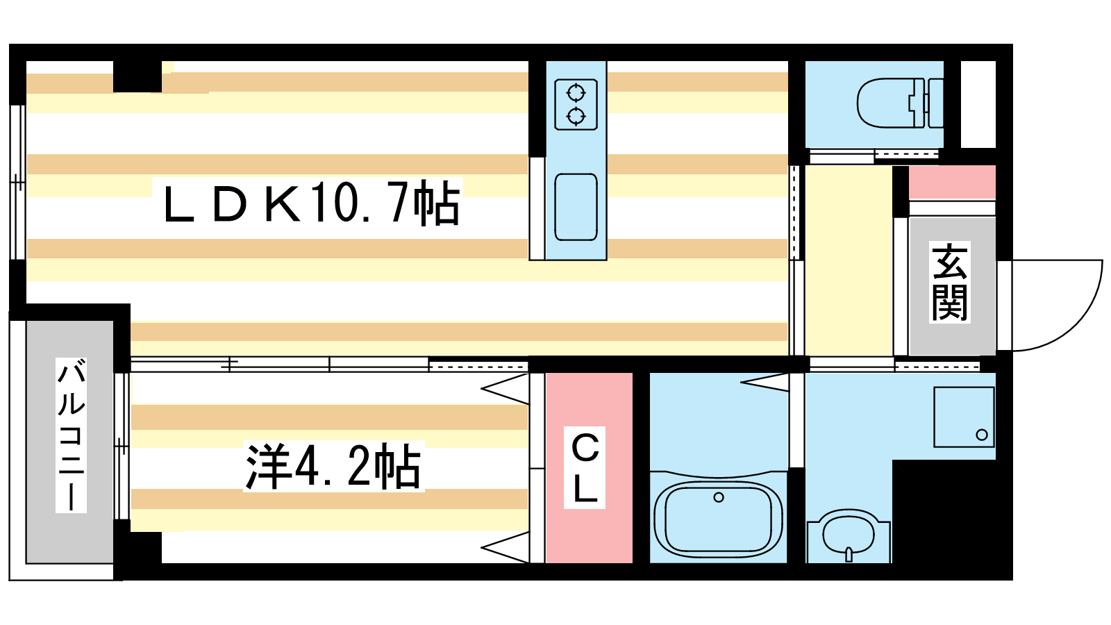 - LDK10.7帖、洋室4.2帖