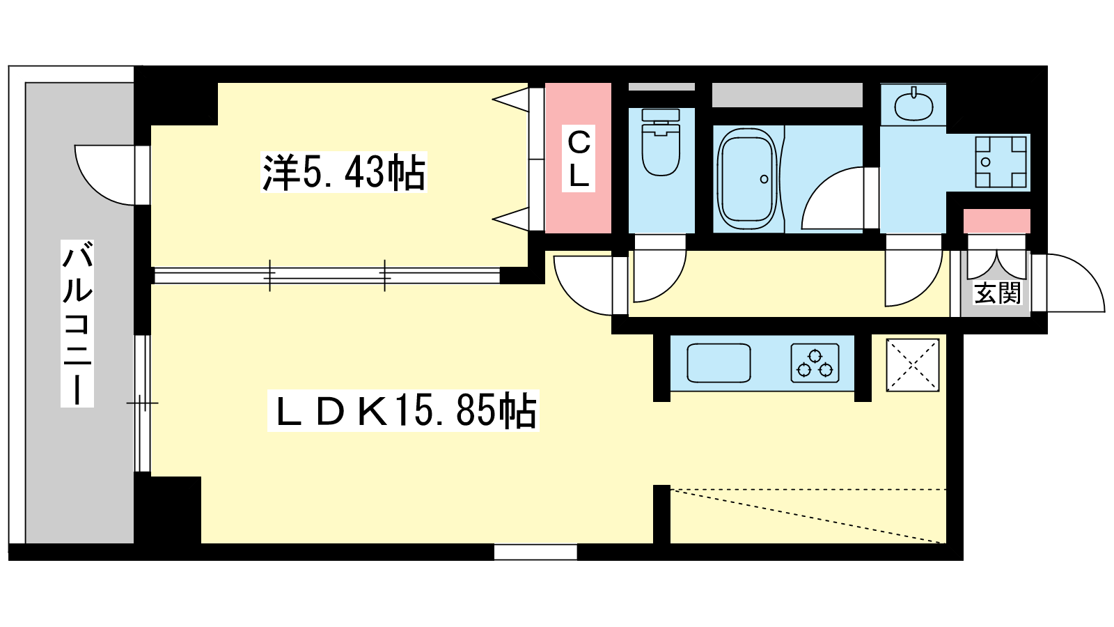- LDK15.85帖、洋室5.43帖