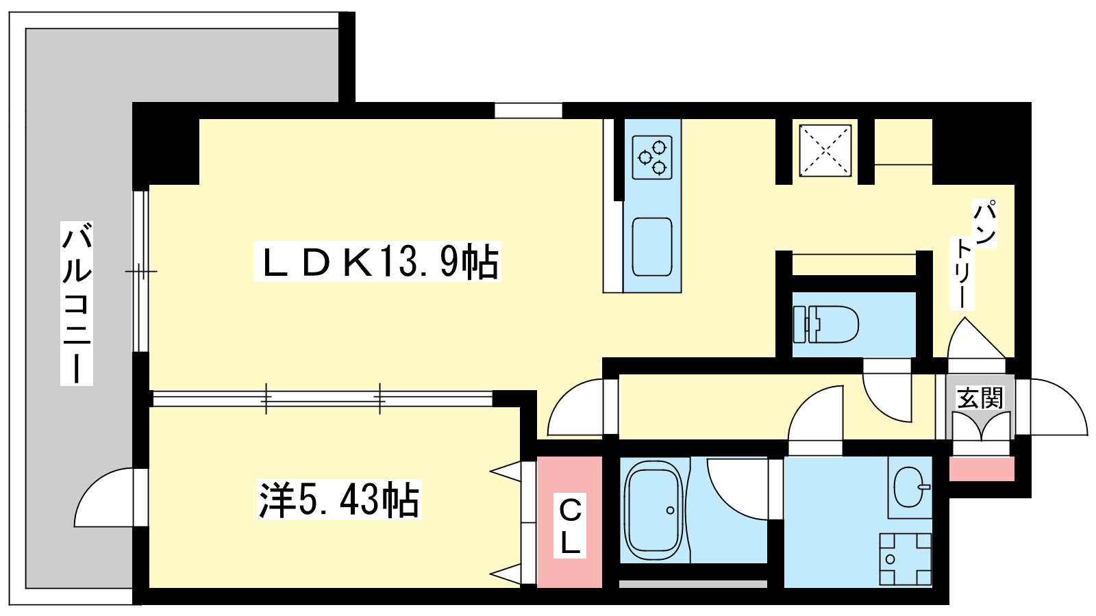 - LDK13.9帖、洋室5.43帖