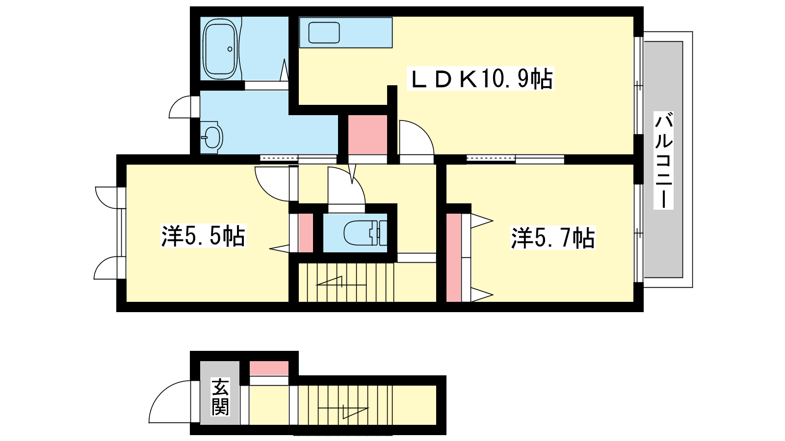 - LDK10.9帖、洋室5.7帖、洋室5.5帖