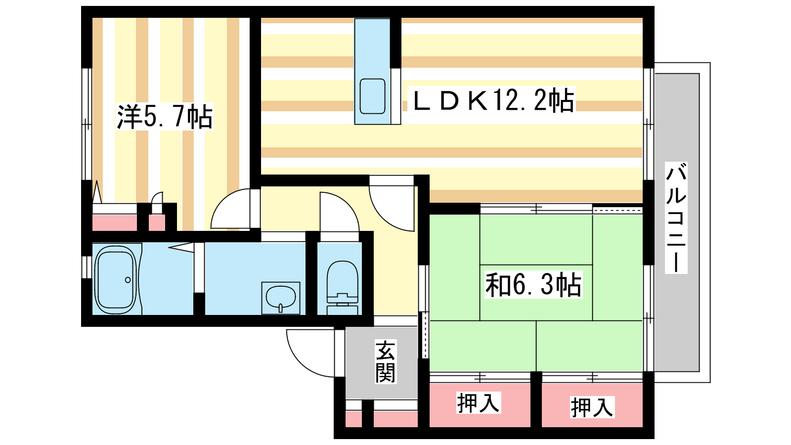 - LDK12.2帖、和室6.3帖、洋室5.7帖