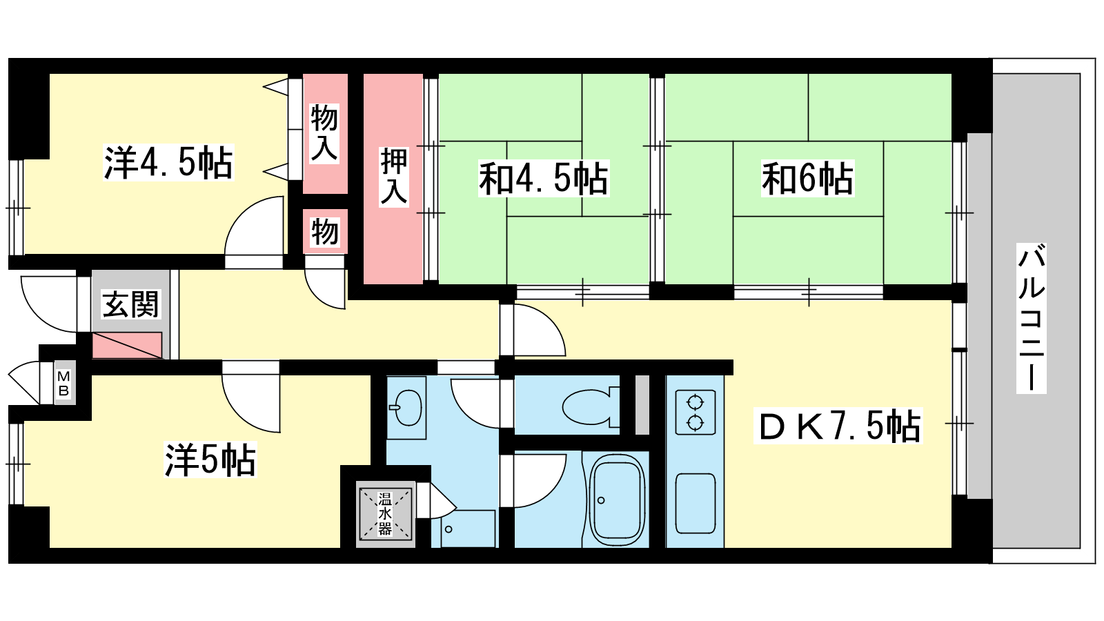 - DK7.5帖、和室6帖、洋室5帖、洋室4.5帖、和室4.5帖