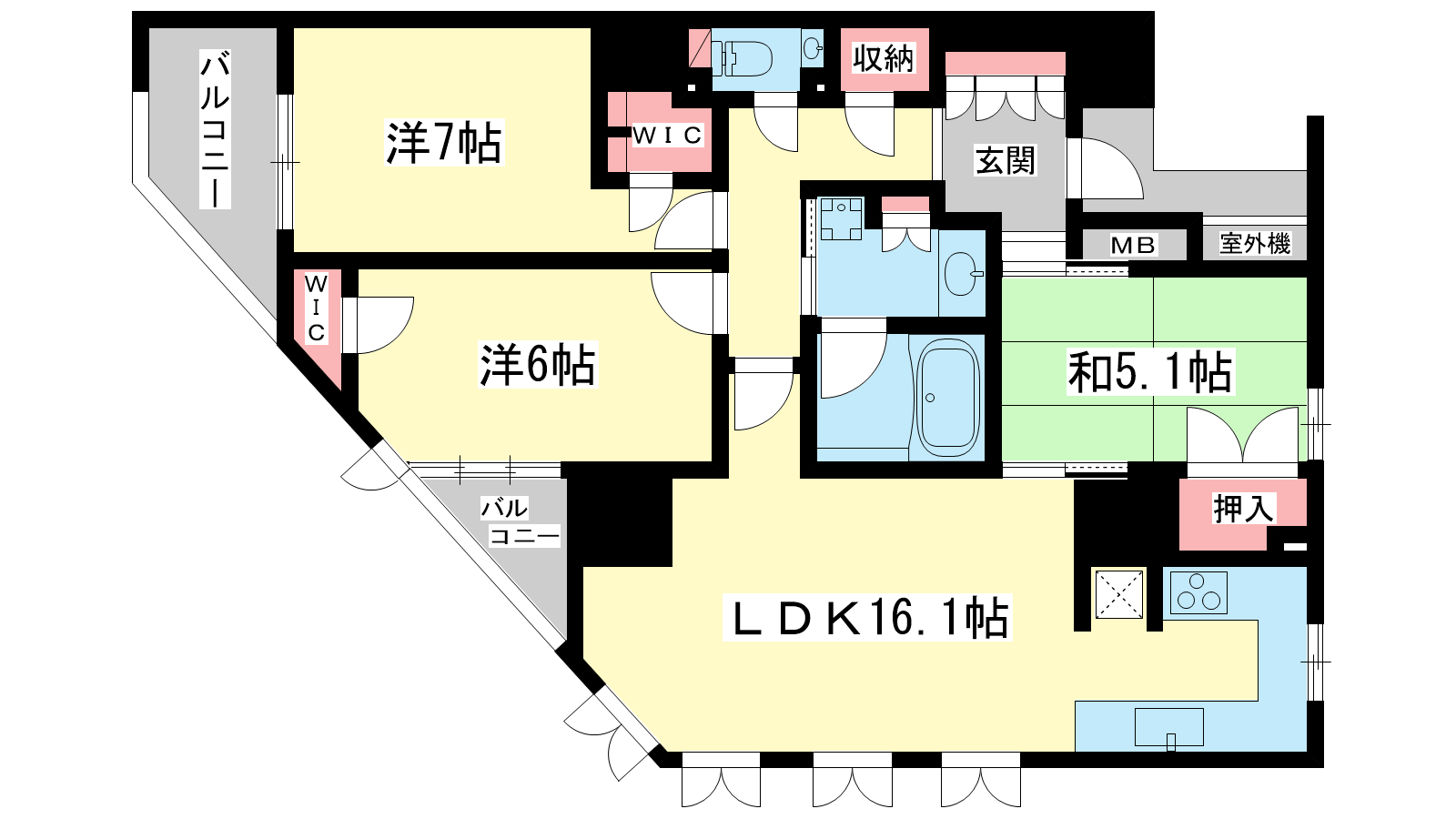 - LDK16.1帖、洋室7帖、洋室6帖、和室5.1帖