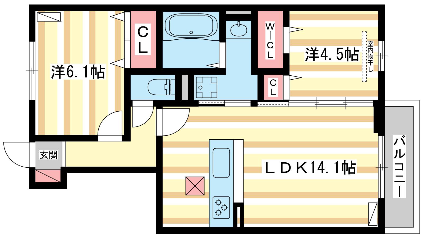 - LDK14.1帖、洋室6.1帖、洋室4.6帖