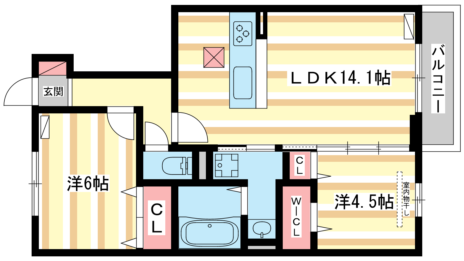 - LDK14.1帖、洋室6帖、洋室4.5帖
