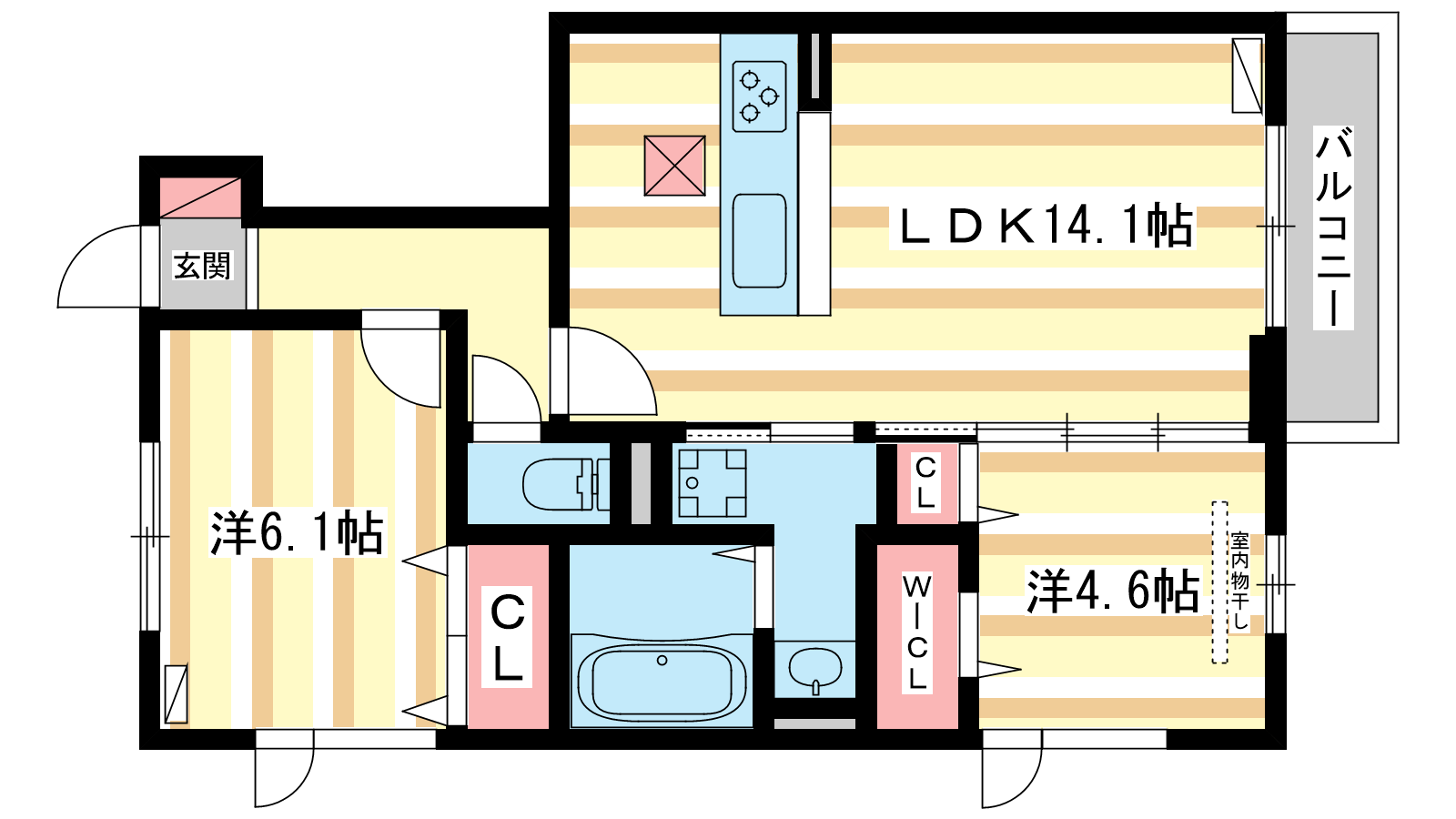 - LDK14.1帖、洋室6.1帖、洋室4.6帖