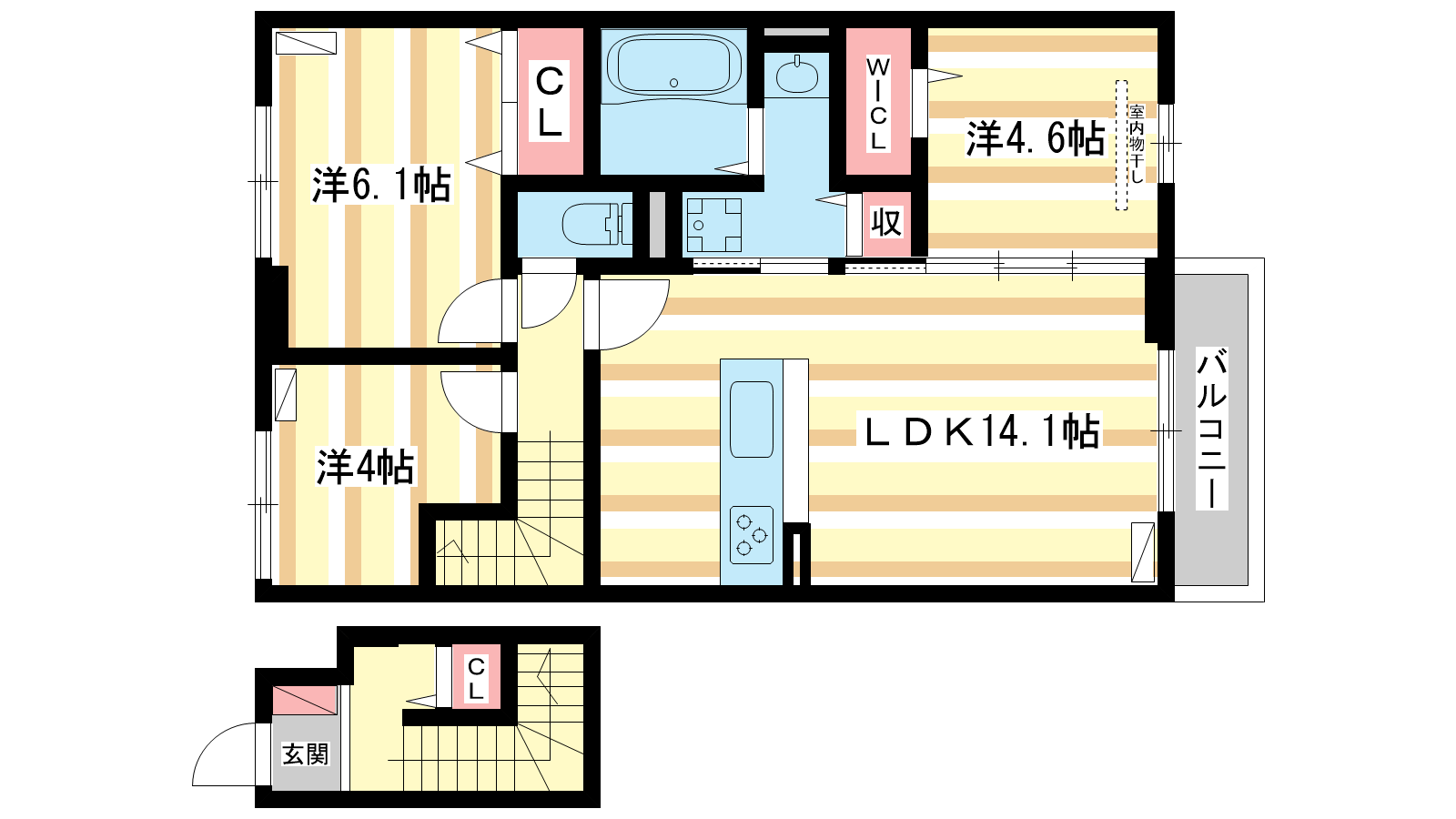 - LDK14.1帖、洋室6.1帖、洋室4.6帖、洋室4帖