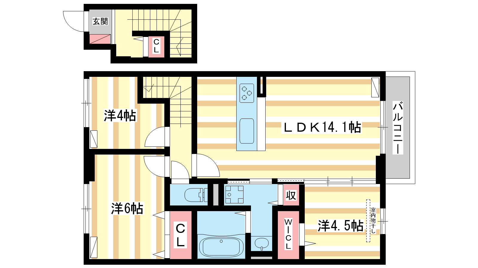 - LDK14.1帖、洋室6帖、洋室4.5帖、洋室4帖