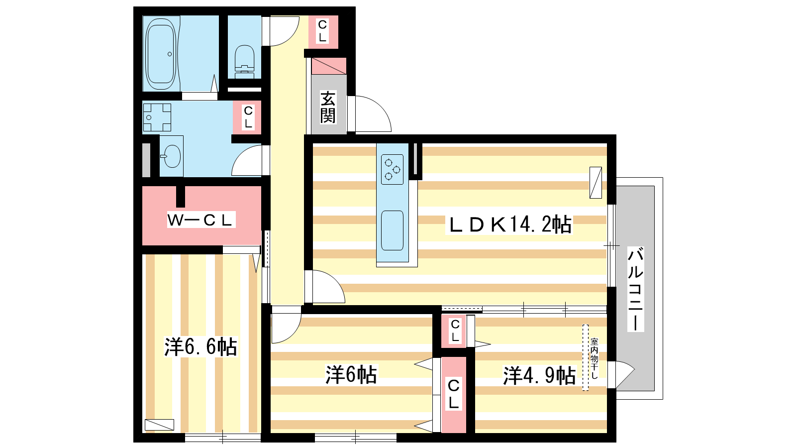 - LDK14.2帖、洋室6.6帖、洋室6帖、洋室4.9帖