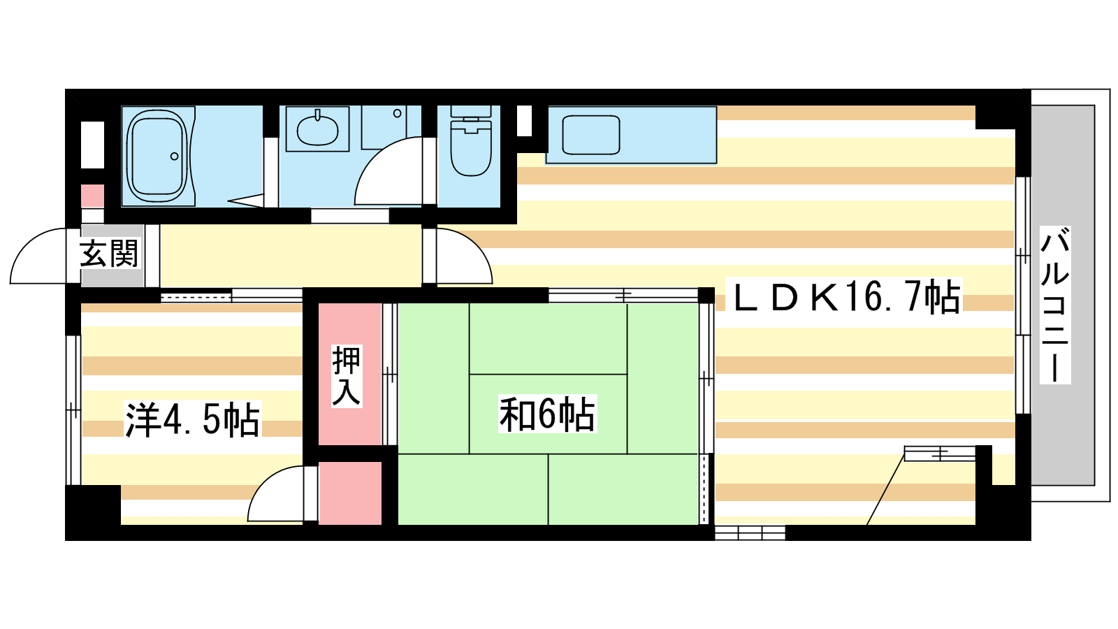 - LDK16.7帖、和室6帖、洋室4.5帖