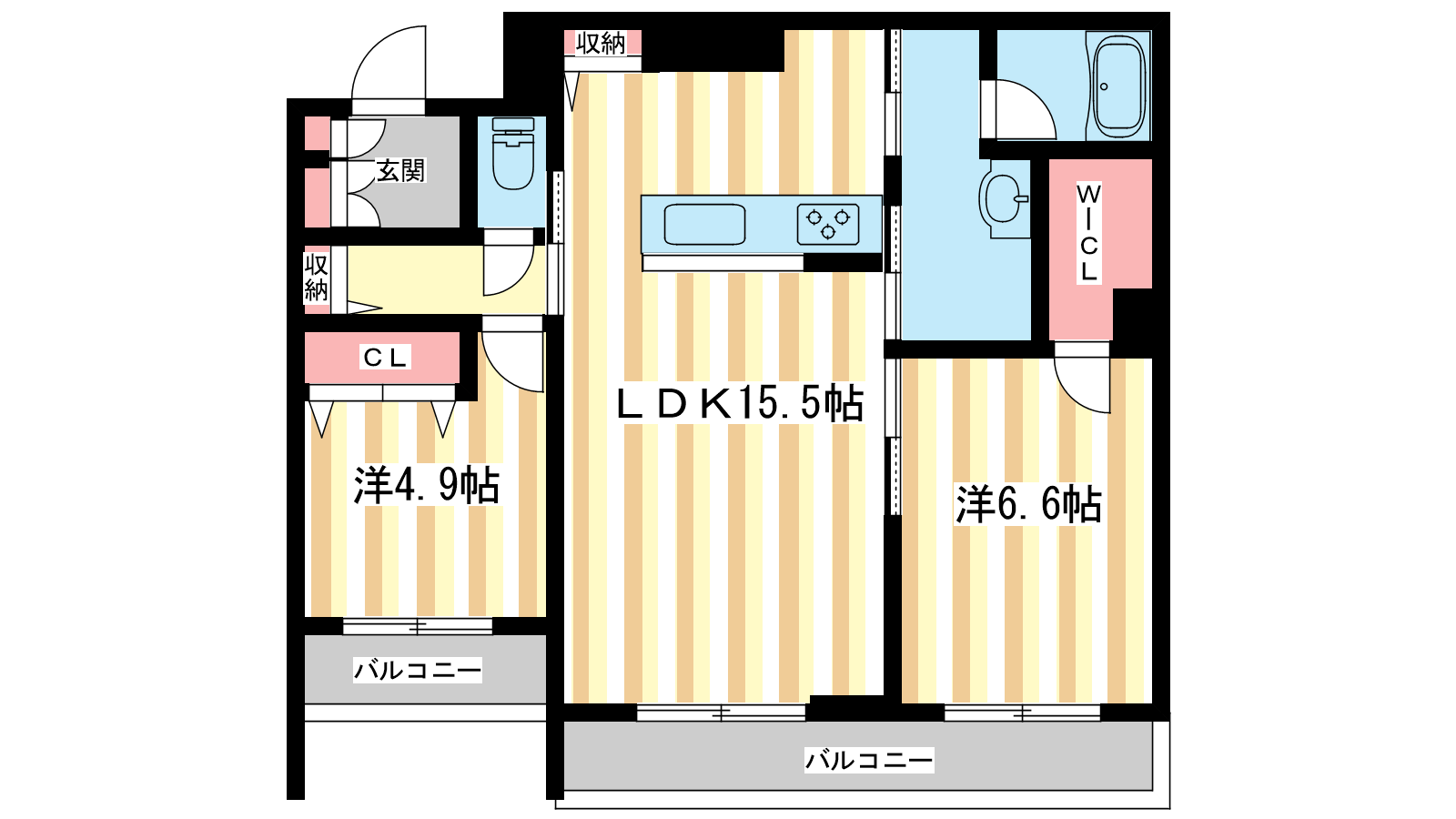- LDK15.5帖、洋室6.6帖、洋室4.9帖