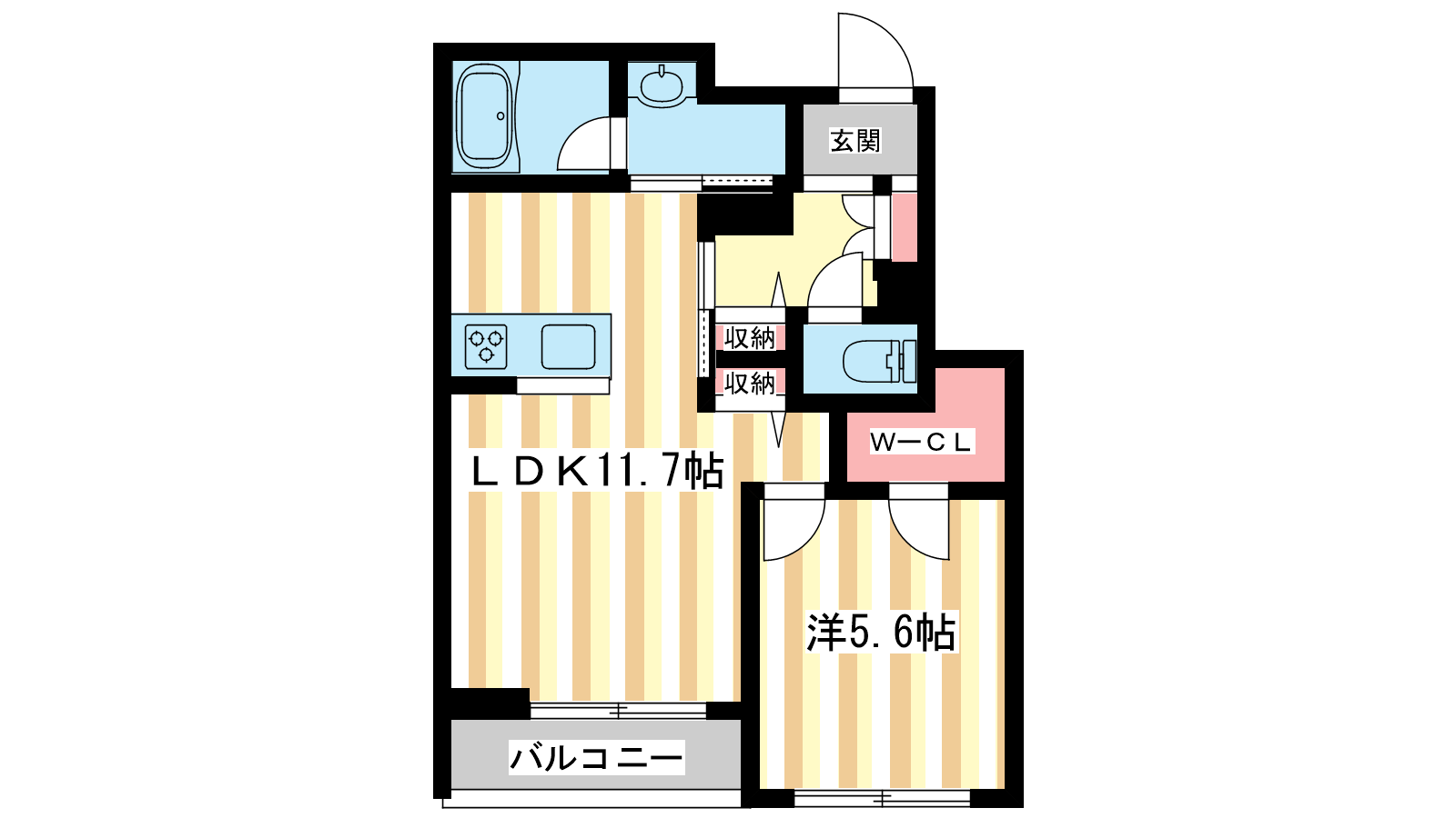 - LDK11.7帖、洋室5.6帖