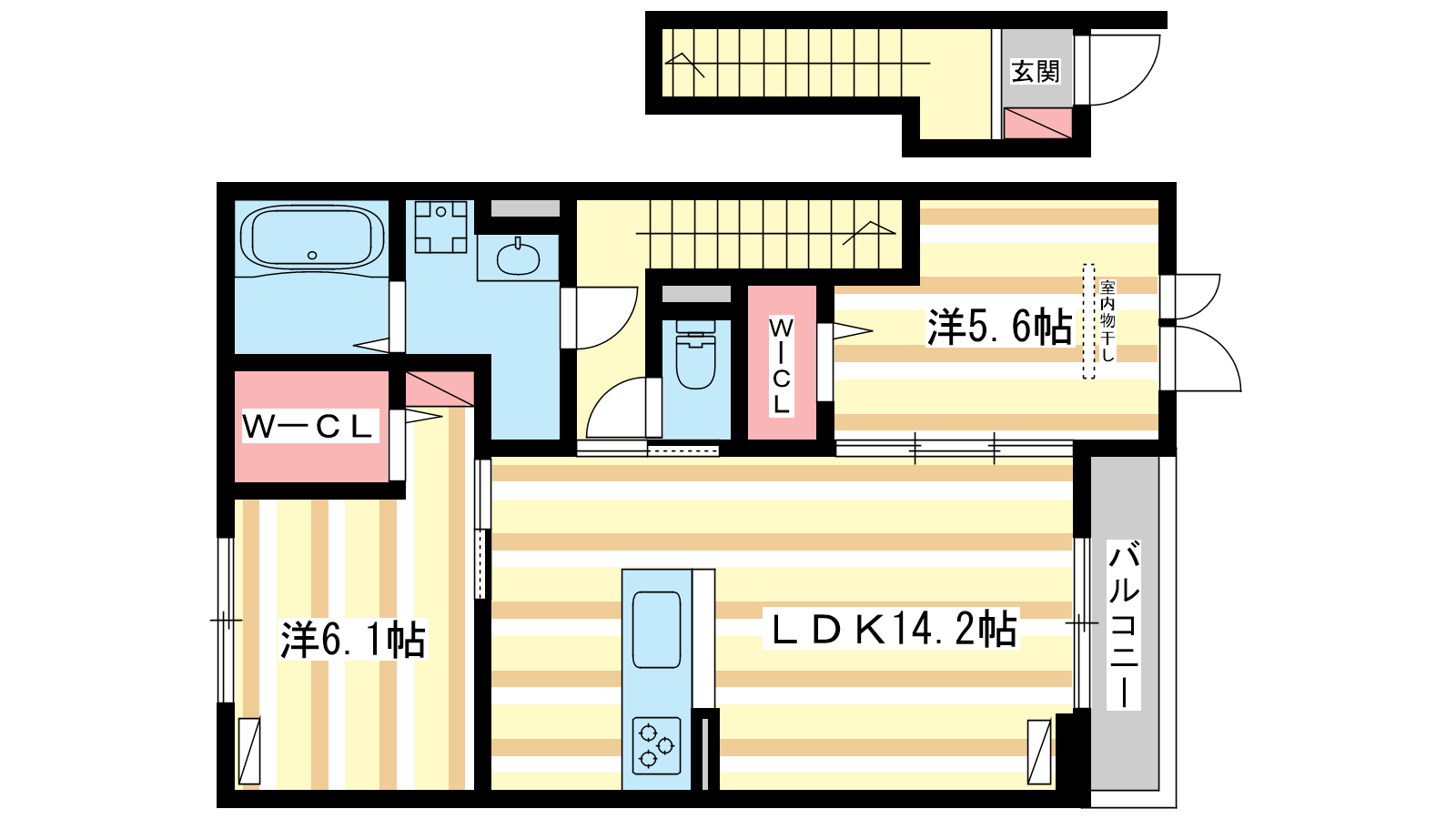 - LDK14.2帖、洋室6.1帖、洋室5.6帖