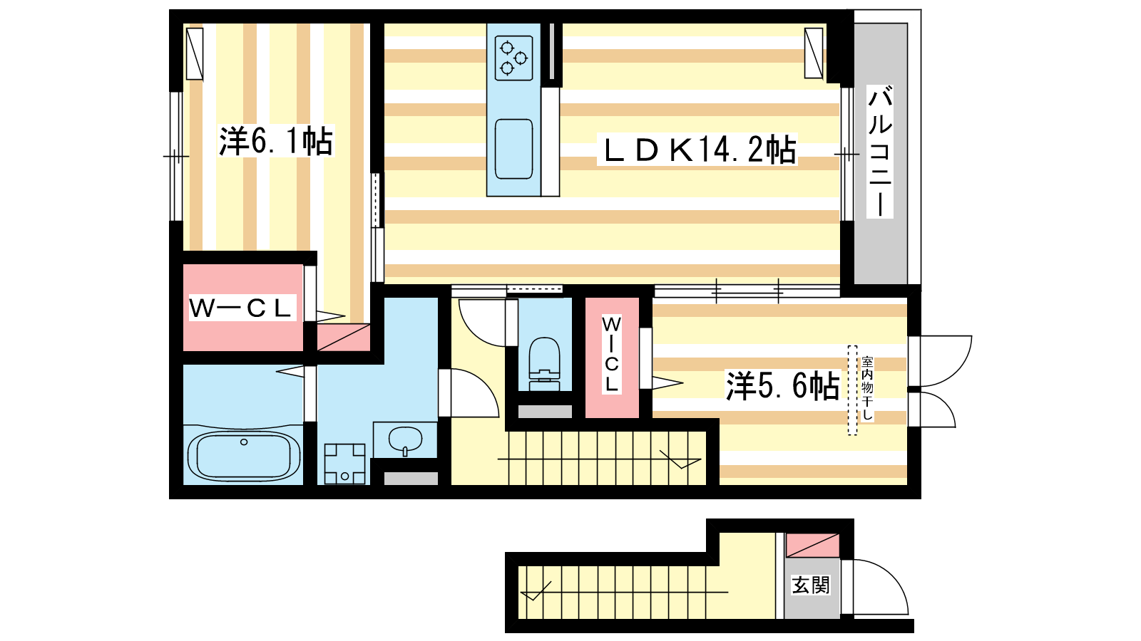 - LDK14.2帖、洋室6.1帖、洋室5.6帖